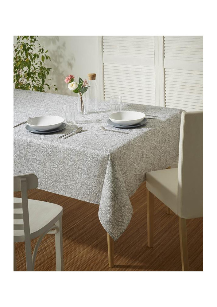 Es un mantel textil que ha sido tratado específicamente para repeler las manchas con: